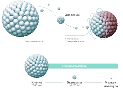 Экзосомы – это внеклеточные везикулы, которые выделяют клетки живых организмов, и благодаря которым клетки взаимодействуют между собой. С экзосомами, поврежденная клетка получает инструкцию, для естественного процесса ее обновления и омоложения.