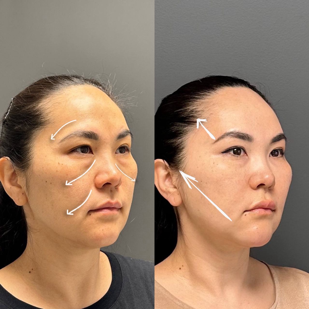 Позволяет подтянуть овал лица помощи контурной пластики в технике MD Code. Дает естественный лифтинг лица.