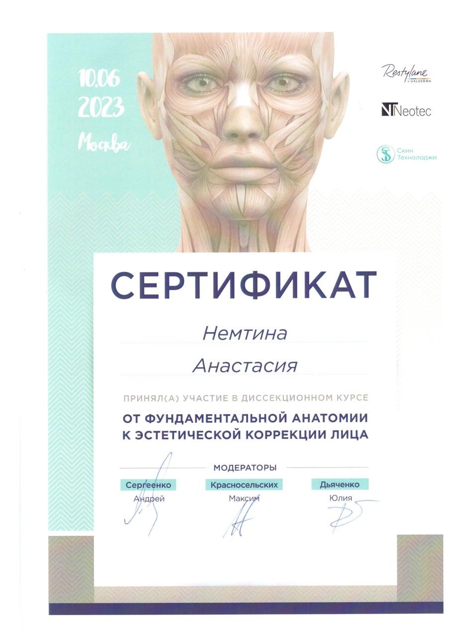Россия (Москва). Приняла участие в диссекционном курсе «От фундаментальной анатомии к эстетической коррекции лица.»