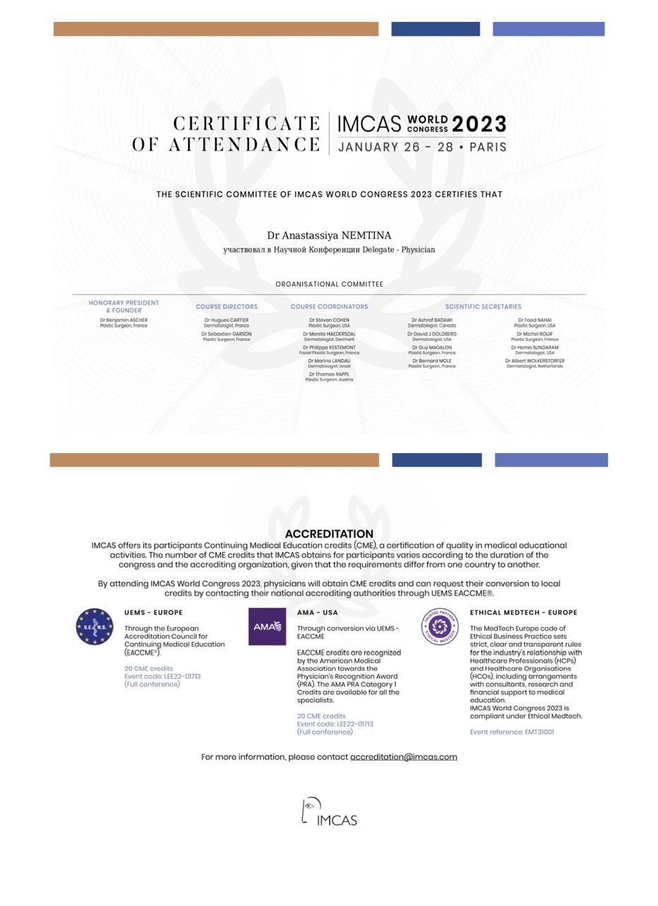 Франция (Париж). Участвовала в научной конференции «IMCAS World Congress 2023»
