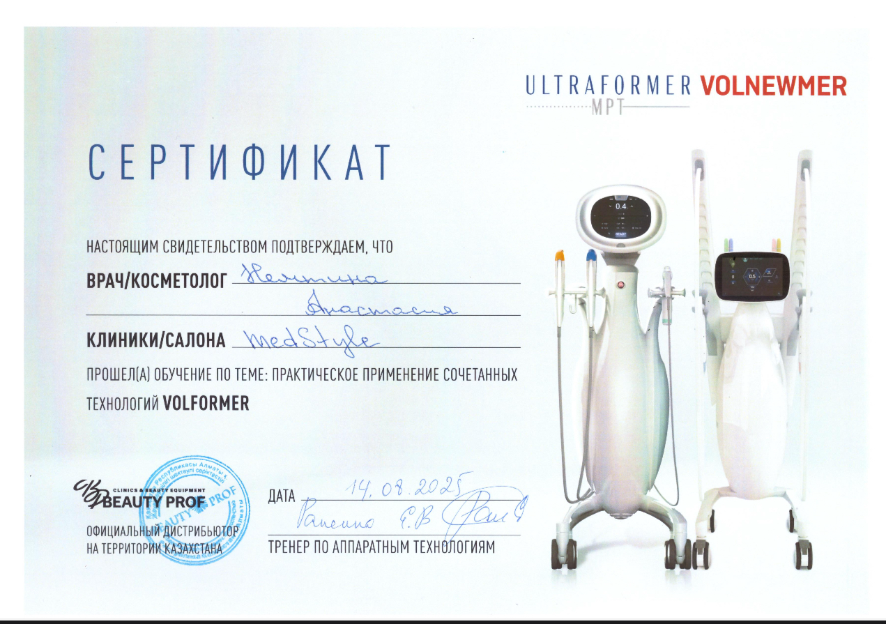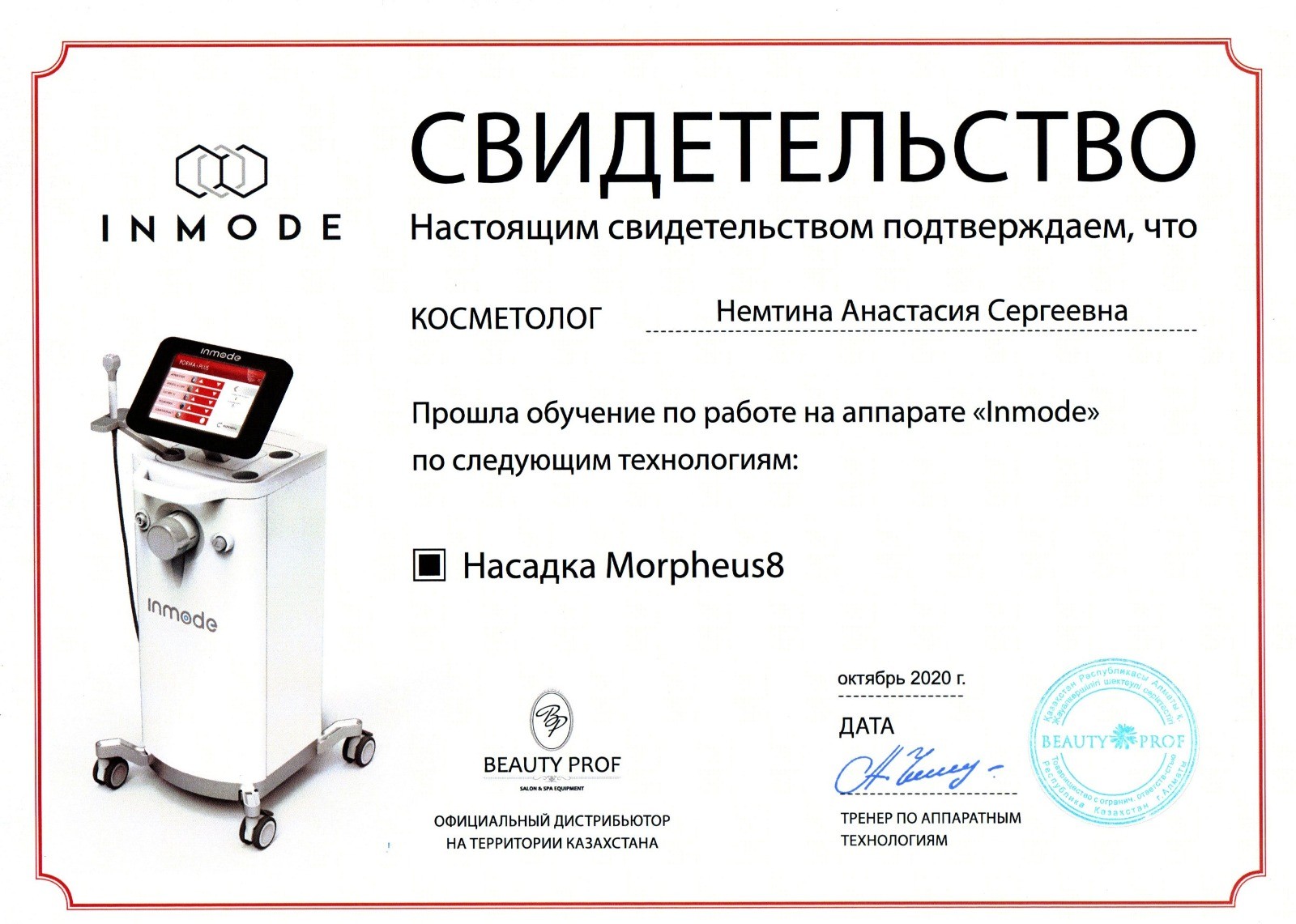 Прошла научно-практический курс повышения квалификации по технологиям INMODE-Morpheus8, Lumecca, Forma, Fractora, Diolaze, Bodyfx.