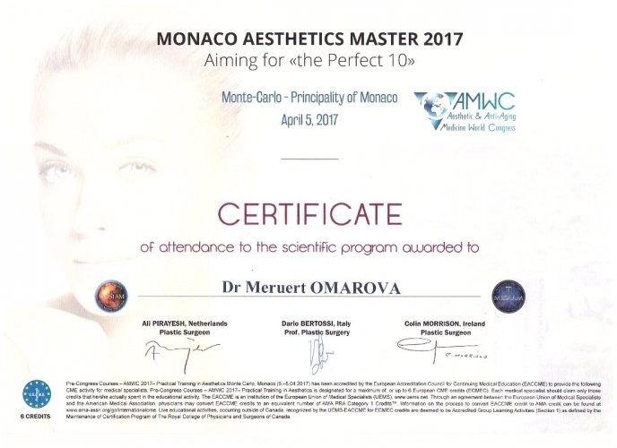 Обучение на Международном Конгрессе: «MONACO AESTHETICS MASTER 2017 AMWC Aesthetic & Anti-Aging Medicine World Congress». Монте Карло. Монако.